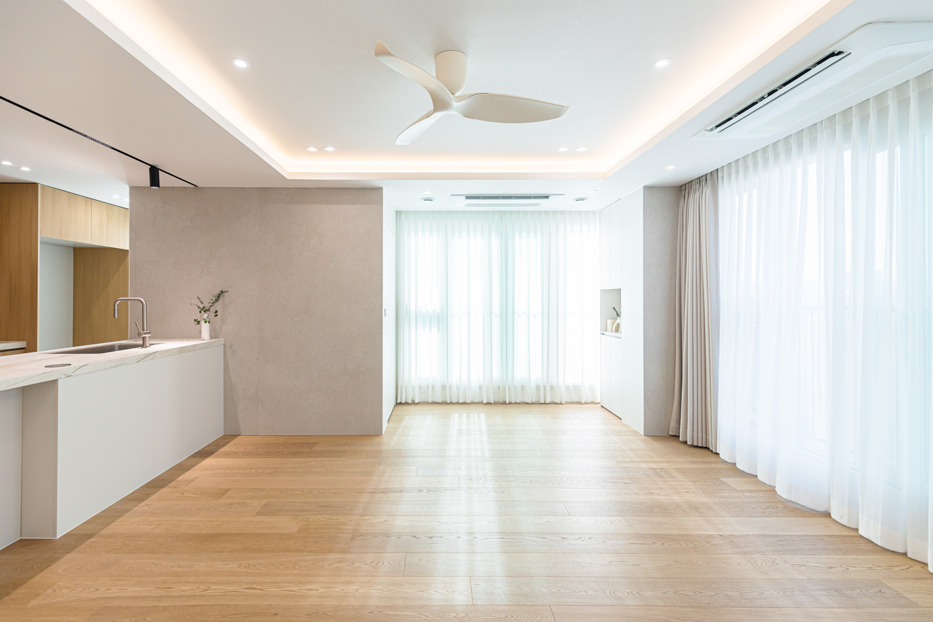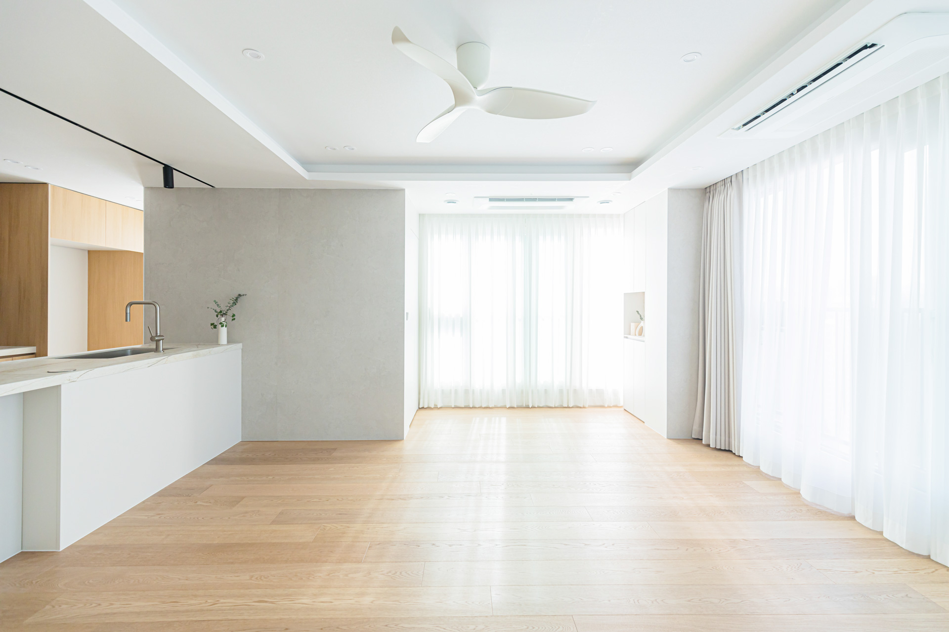 내추럴 우드와 화이트의 배색으로 완성한 인테리어